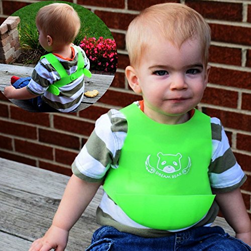 -. Title : DREAM BEAR® Soft Wearable Baby Bib, Food-grade Silicone,Green/Pink