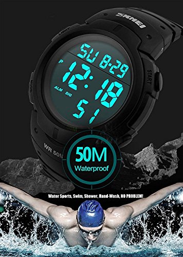 Special features:Come with date display, Date, Week Display. Alarm Function stop-watch,, 50M, waterproof,