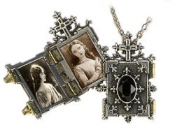 Photo locket in the authentic, classic style of an Eastern Orthodox church icon, with brass hinges and fasteners. Takes two 20mm x 30mm size pictures. Swarvoski crystal.