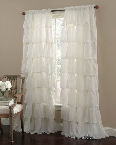 This elegant ruffled panel uses cascading layers of soft, crinkled voile to create an elaborate bouffant styled panel.