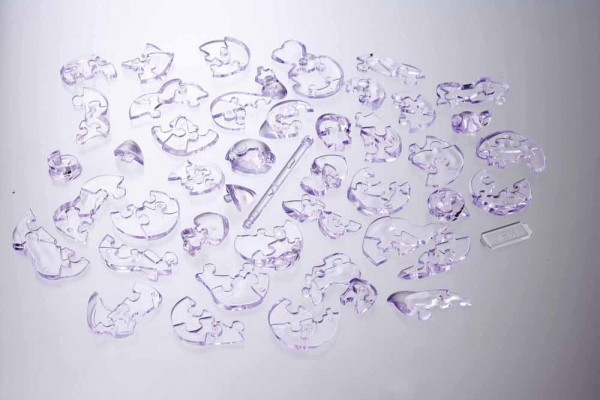 透明ピースを組み上げる立体ジグソーパズル。