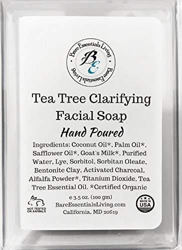 Organic Facial Soap - for normal, oily, dry, combination skin including mature and sensitive skin, rosacea, eczema, psoriasis, back acne by Bare...