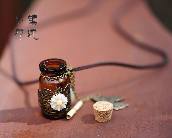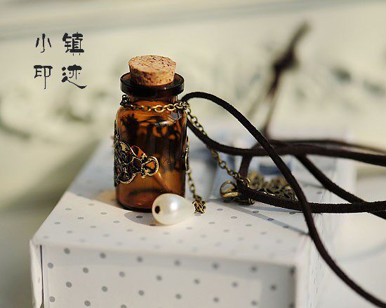 Wishing bottle cork little child, refined aesthetic, metal stenciling and butterflies bring a deep sense of retro feel, white pearls and pink flowers dotted the water, but also increased the number of soft femininity. Retro and there are feminine - the owner favorite two elements into a necklace designs. Inside the bottle is white imitation pearls and vintage small rolls, you can also open out to write their wishes