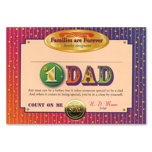 Beistle CG048 No.1 Dad Certificates, 5 by 7-Inch, 6-Pack