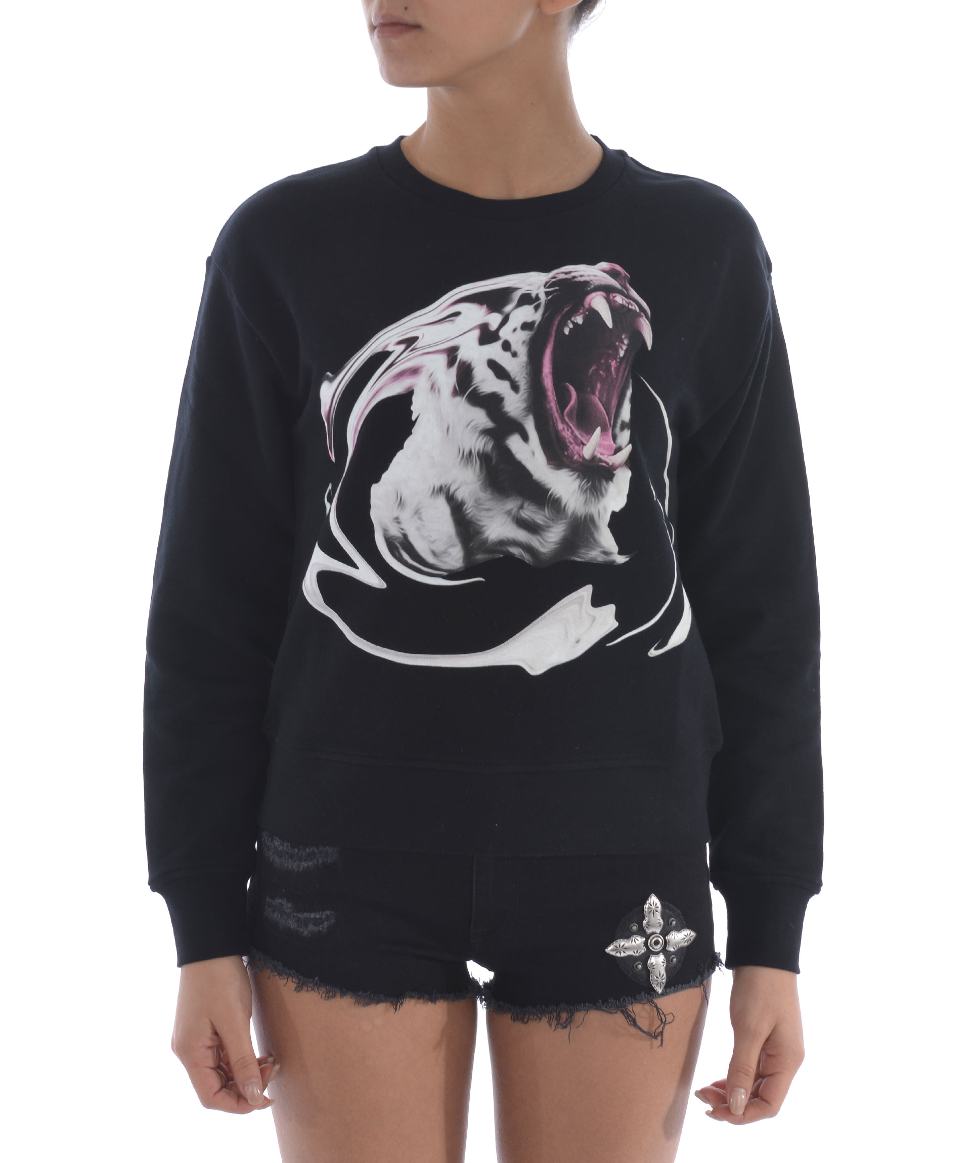 Tiger Print Sweatshirt from Marcelo Burlon: Black Tiger Print Sweatshirt with crew neck, long sleeves, straight hem, tiger print on front and ribbed cuffs