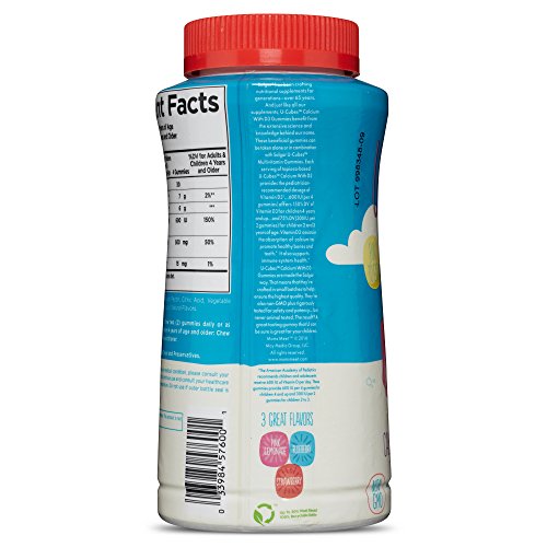 These beneficial gummies can be taken alone or in combination with Solgar U-Cubes Multivitamin Gummies. Each serving of tapioca-based U-Cubes Calcium with D3 provides the pediatrician-recommended dosage of Vitamin D3¹…600 IU (per 4 gummies) offers 150% DV of Vitamin D3 for children 4 years and up…and 75% DV (300 IU, per 2 gummies) for children 2 and 3 years of age. Vitamin D3 assists in the absorption of calcium to promote healthy bones and teeth.* It also supports immune-system health.