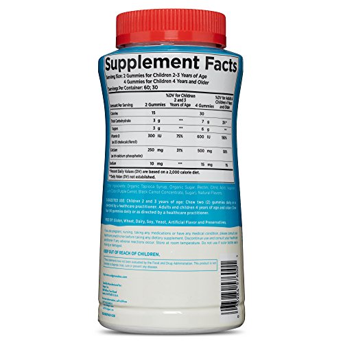 The American Academy of Pediatrics recommends children and adolescents receive 600 IU of Vitamin D per day. These gummies provide 600 IU per 4 gummies for children 4 and up and 300 IU per 2 gummies for children 2 to 3