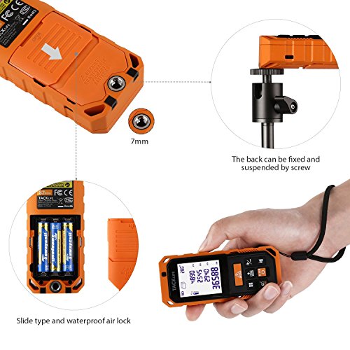 Tacklife S2-40 Premium Laser Measure 131Ft with Built-in Electronic Angular Sensor of Unique Auto Level/Vertical Measurement and Angle Measurement, Screw Hole, 2.0 Larger LCD Backlight Display