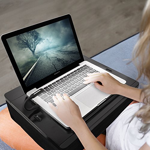 -. Title : iCozy Portable Cushion Lap Desk With Power and Storage + USB Light - Black