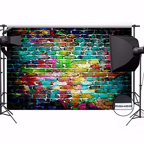 MOHOO 7x5ft Cotton Polyster Photography Background Colorful Brick Wall Collapsible and Washable Studio Prop Background (Updated Material)No Wrinkle
