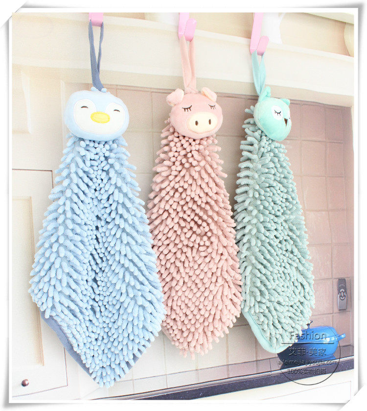 擦手巾挂式厨房卫生间吸水毛巾康乐屋加厚雪尼尔动物抹布擦手布