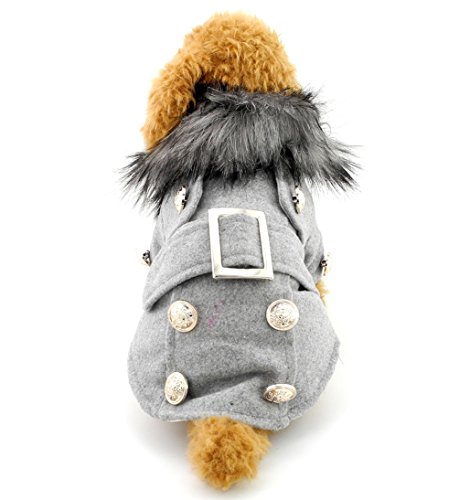 -. Title : Pet Cat Dog Clothes European Woolen Fur Collar Coat Small Dog Cat Pet Clothes Costume Light Grey L