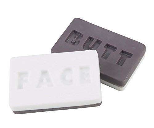 -. Feature : Nearly impossible to get confused on which side to use! / You will get cheek to cheek cleansing with this Butt/Face soap. / Its even color-coded so no one gets confused. / Dimensions: 4 x 1 x 2.5
