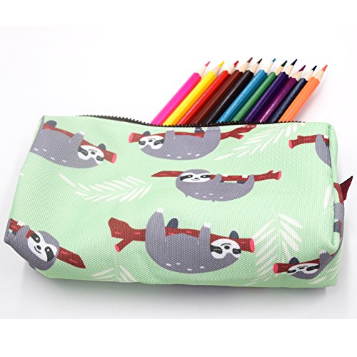 LParkin Sloth Students Super Large Capacity Canvas Pencil Case Pen Bag Pouch Stationary Case Makeup Cosmetic Bag (Blue)