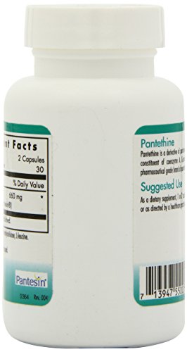 Pantethine is a derivative of pantothenic acid and a key constituent of coenzyme A involved in the metabolism of amino acids, carbohydrates, and lipids.Pantethine has been shown to promote normal cholesterol and triglyceride levels. Contains Pantesin, a high quality, pharmaceutical grade brand of pantethine.Pantesin is a registered trademark of Daiichi Pharmaceutical Co., Ltd., Japan.Each capsule contains: Pantesin 600 mg Other ingredients: Cellulose, silicon dioxide.Suggested Use:As a dietary supplement, 1 or 2 capsules two times daily with meals, or as directed by a healthcare practitioner. This statement has not been evaluated by the U.S. Food and Drug administration. The product is not intended to diagnose, treat, cure, or prevent any disease.Feature