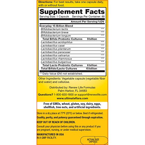 Renew Life Everyday Probiotic, Ultimate Flora, 15 Billion, 60 Capsules