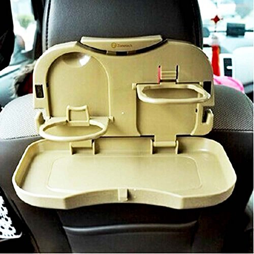 ► SMART DESIGN - This Zone Tech foldable car tray is constructed with two cup holders and a flat surface with multipurpose function. The car tray makes use of so little space artfully.