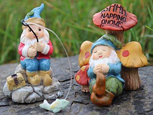 Giftcraft Set of 2 Miniature Fairy Garden Gnomes - Fishing and Napping