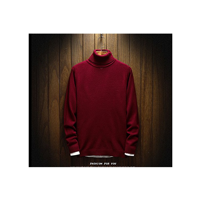 Shenglanda Angelo 터틀넥 니트 스웨터 맨즈 니트 스웨터 하이네구 니트 맨즈 니트 스웨터 터틀넥 긴 소매 케이블 니트 무지 추 추동 (레드, L)