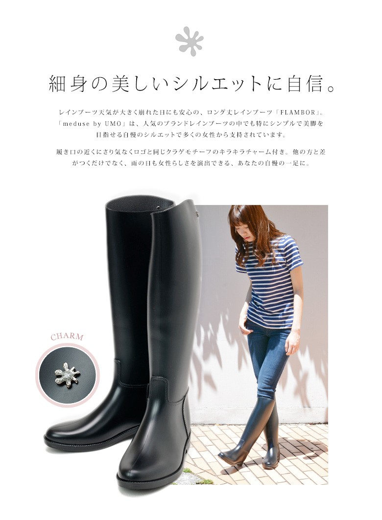 | 商品名 | meduse by UMO メデュース バイ ウーモ ウモ レインブーツ ロング FLAMBOR フランボア チャーム付き 取り外し不可 ラバーブーツ 長靴 レディース 送料無料 | ||