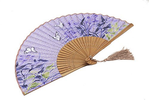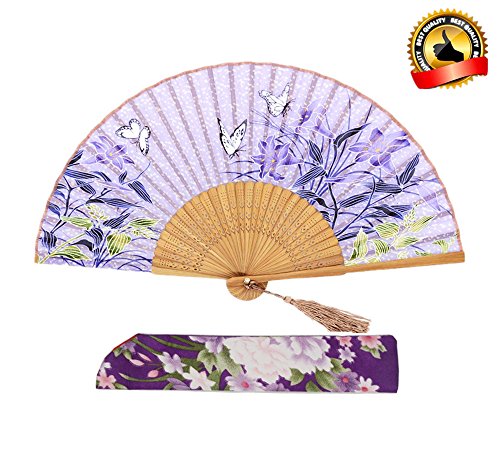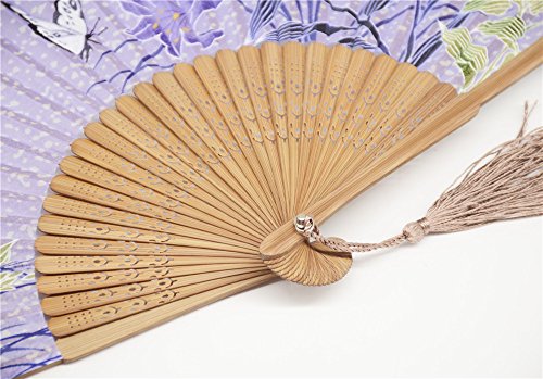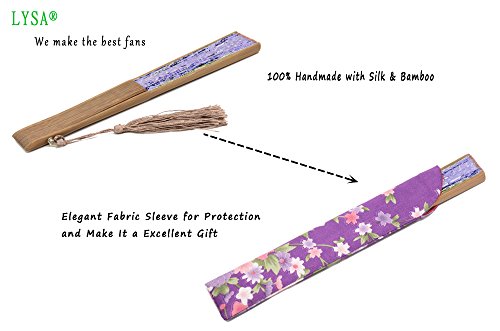 LYSA "8.27" (21cm) Women Hand Held Silk Folding Fan, Silk Tissue Protective Sleeve -- Chinese/Japanese Style (Purple-030)