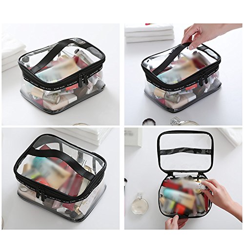 - Clear transparent material with durable zipper and handle