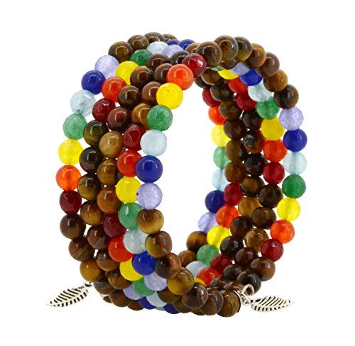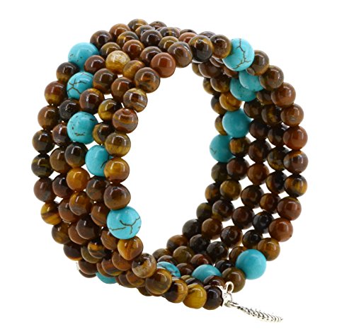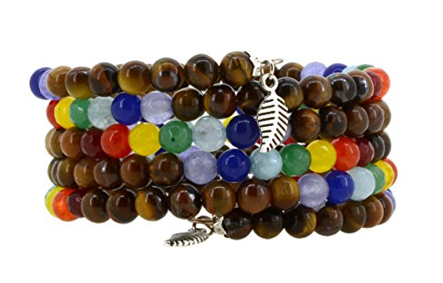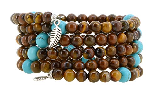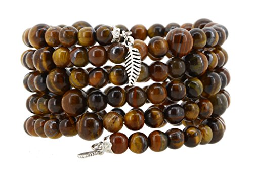 -. Feature : Fashion Wide Hand Bangle Wrap Bracelet with Silver Tone Feather Charms and Alloy Memory Wire; / 5 Raw Wrap Around Stone Bracelet with Round Beads for Women; / Free Mandala Crafts Velvet Gift Bag; / Tiger Eye Bead Size: 6mm-8mm; Inside Diameter: About 2.1 Inches; Width: About 1.6 Inches; / Alloy Memory Wire and Alloy Feather Charms;