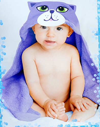 Animal Character Toddlers Hooded Bath Towel (Purple Cat)