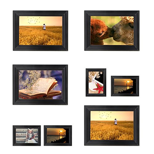 -. Feature : Solid Pine Wood Material in black finish and white finish, organic glass(PMMA) with 99% transparency strong enough to prevent it come to bits. / A set of picture frames with different size will add your choice: to memorize your bady's growth, to honor your parents, to retain your family's smile / It includes five 10 inches, and five 5 inches frames,It applys photoes with 10x8 inches, 5x3.5 inches / It can only hang on the wall, not put on the table / Note:there is protection film on the glass , tear it out first when you use it .