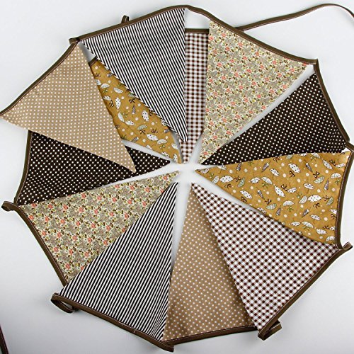 Material: cotton fabric. Total 12 flags.Each flag measures approx 6.69"(17cm) in across top length and 8.27"(21cm) in height