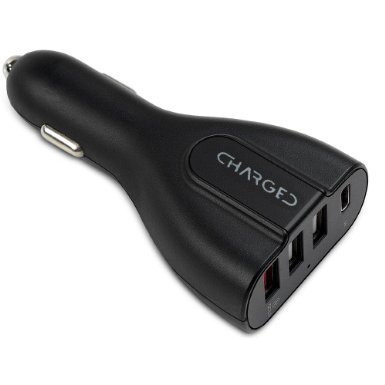 4 Port Quick Charge Car Charger - USB-C / QC 3.0 / 2.0 [ 50W ] [Black]