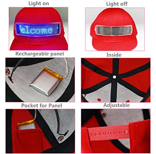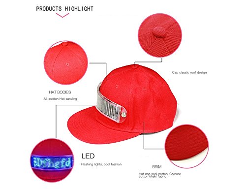 -. Feature : ★What you get - 1 x LED Banner Hat Lightup Advertising Cap. 1 x Charger. 1 x Cable. One size fit all for kids & adults age above 6 years. Fast delivery. 7-15days arrives via E-packet if ship from our warehouse / ★Feature - LED hat made of 100% eco-friendly cotton material, with CE electronic rechargeable panel, reusable, size adjustable. Personalized cap make you special / ★Novelty - Creative LED flashing hat connected with mobile via bluetooth. the headline on the cap can be changed via mobile APP / ★Occasion - Unique LED light up hat perfect for kids, adults. Flashing cap smart design Perfect for dancing, team shower, party, holiday, concert, birthday, Christmas, for family, friends, or businessmen use / ★How to Use - Scan and download APP to set the letters of what you wanna show on the hat, use mobile to change the letters or turn on and off. easy to use