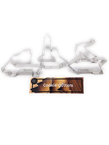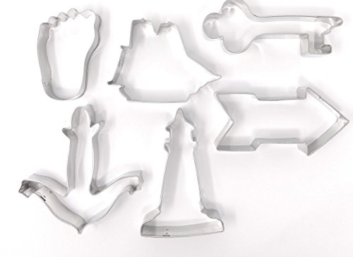 5 Pack Cookie Cutter Set Includes (1)Sailing Ship 4.25",(1) Right Foot 3.5", (1) Light House 4.5", (1) Anchor 4.5", (1) Arrow 5", (1) Key 5.5"