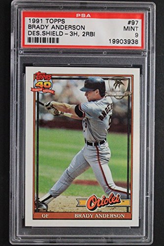 Brady Anderson Orioles 1991 Topps #97 Desert Shield Graded Card PSA 9