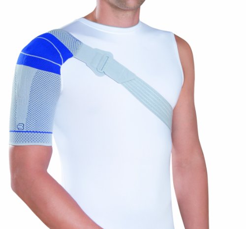 Studio : Bauerfeind USA, Inc Publisher : Bauerfeind USA, Inc Binding : Sports Product Description OmoTrain S provides secure support for the shoulder joint and strongly promotes mobility in order to restore function. During each movement, the compression knit and a removable massage pad with frictional nubs (Delta pad) massage the soft tissue, thereby relieving pain, and activate the musculature that stabilizes the joint. It is simply slipped on using the healthy arm, pulled over the head and arm, and secured in place using the Velcro fastening. Thanks to its direct strap system, the support participates in every movement and is easy to put on and take off. It is therefore particularly suitable for use in pain therapy, for immediate care for injuries, and for protection against further injuries both in everyday activities and in sport. It provides intermittent compression to the shoulder which increases circulation, relieves pain and swelling, improves joint perception and activates the joint-stabilizing muscles. Made in Germany with the highest quality standards. Bauerfeind is the brand chosen by top professional and Olympic athletes. Loosely measure circumference of biceps, while the arm is hanging loose: Size 0 = 7 ¾ - 8 ½, Size 1 = 8 ½ - 9 ½, Size 2 = 9 ½ - 10 ¼, Size 3 = 10 ¼ - 11 ½, Size 4 = 11 ½ - 12 ½, Size 5 = 12 ½ - 14 ¼, Size 6 = 14 ¼ - 15 ¾. 0