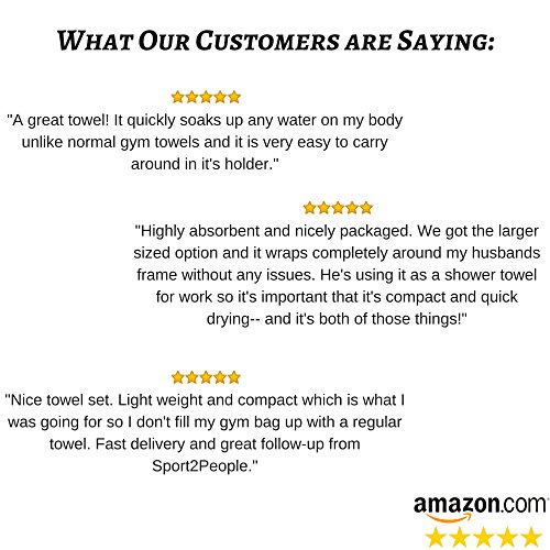 ENJOY YOUR MORNING SHOWERS AND EVENING BATHS WITH A SOFT, LUXURIOUS AND SUPER ABSORBENT BATH TOWEL! Imagine the towel slides across your body like a cotton towel and it practically sucks the water off of your skin. Due to its professionally woven high quality fabric and fibers Sport2People towel does it all. NO MORE STICKY FEELING ON YOUR SKIN AND WET & SMELLY TOWELS IN YOUR BATHROOM! Antibacterial and quick-dry properties prevent mold, odor and germs. Also great for quickly drying your hair!