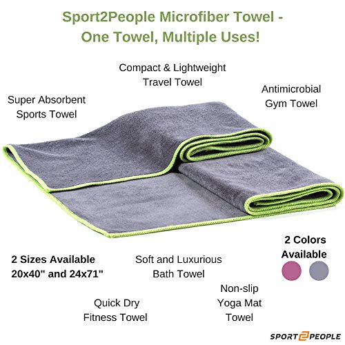 Microfiber Yoga Mat Towel - Quick Dry and Extremely Absorbent Sports Gym Towel by Sport2People - Perfect for Fitness Camping Backpacking Travel Beach - 2 Sizes & Colors Available
