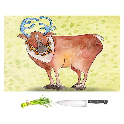DiaNoche Designs CB-MarleyUngaroReindeerChartreuse2 Marley Ungaro-Reindeer Chartreuse Unique Kitchen Slicing Dicing Bar Artistic Decorative Cutting Boards from, Large 15" x 11"