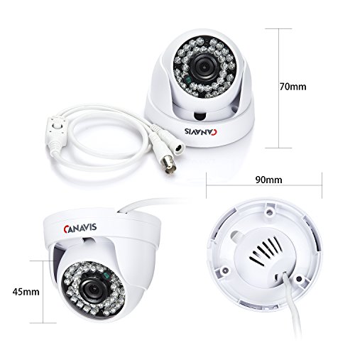 -. Feature : Powerful CCTV camera security system is one of the very few effective ways to protect your home safe, it will record video and send you email elerts when it motion detected / 4pcs high definitely 720p HD 1.0 Megapixel cctv cameras with 36 IR Leds light will help you record high quality images video no matter day or night. And it also boasts advanced auto gain control(AGG) and back light compensation(BLC) technologies that enhance the picture quality regardless of lighting conditions / Unique and fashion design dome camera, easy to install and convenient for you to change its viewing angle whenever you need. But if you need more channel to set up 6 or more cameras, please search ASIN "B01NCN785X". It will offer you 8 Channel AHD DVR with 4pcs dome cameras with a reasonable P.R.Ice / Download our app "XMEYE" on your mobile, which will offer you a live feed at any given moment AND the e-mail/mobile notifications each time the cameras detect even a hint of motion. What's more, you will be able to manage multiple devices and it allows 10 people at least to view live video / CANAVIS offers you 1-Year warranty and Lifetime technical support