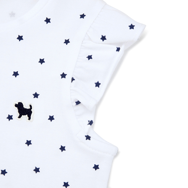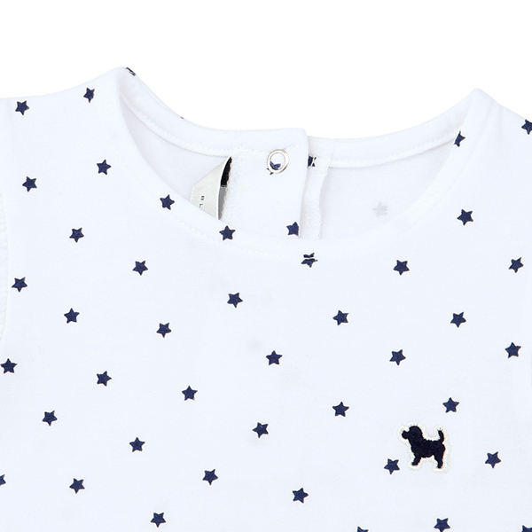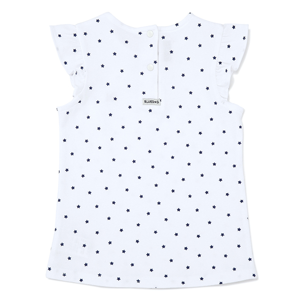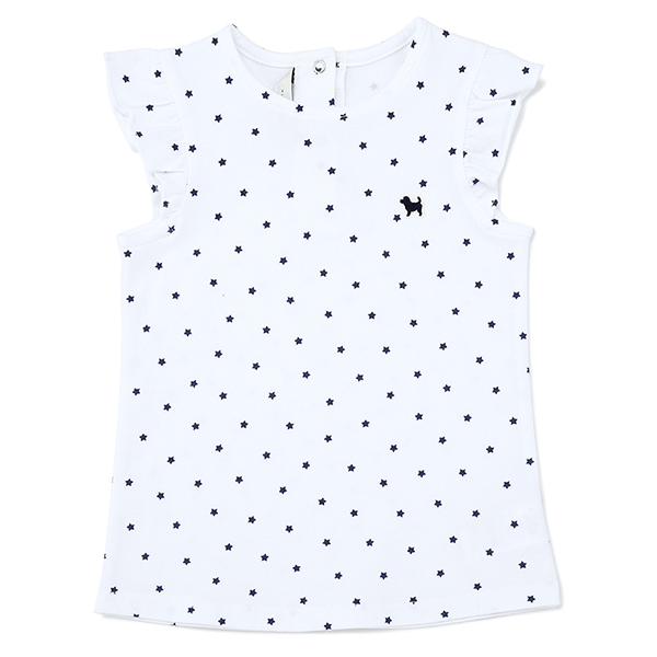 별 전판의 여아 프릴 티셔츠입니다.여아핏과 프릴소매 포인트로 어떤 아이템과도 함께 사랑스럽게 코디가 가능한 상품입니다