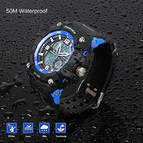 DURABLE & HIGH QUALITY MATERIALS: HOWOD's teens sport watch is manufactured with environmental friendly, high quality materials. It has a stainless steel back and buckle, plus a soft PU strap that ensures comfortable adjustment on a teenager's wrist with 10 regulation holes and perimeter from 5.2 to 8.7 inches. This is a dual time movement watch, 50m water resistant and has a long lasting battery.