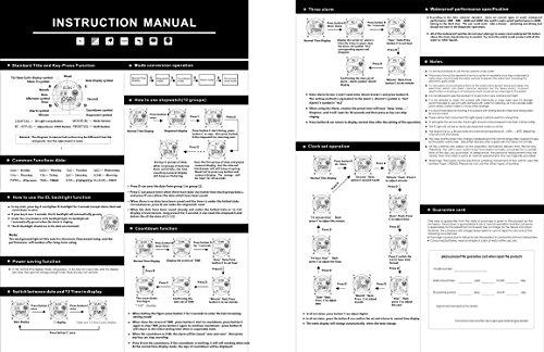 2. Digital Display,Dual time, Back light function, Stop watch function, Alarm clock function, 12H/24H time format,Long battery life,Stopwatch (1/100 seconds)