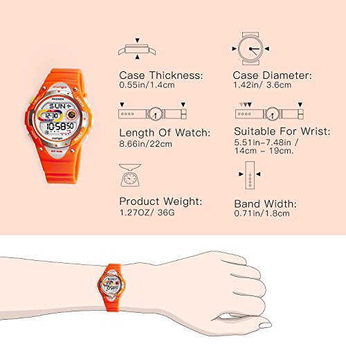 Suitable for wrist 14cm - 19cm. Over Age 6 years old . Safe and non-toxic plastic strap, no harm to children's Skin. It is also very suitable for outdoor sports.