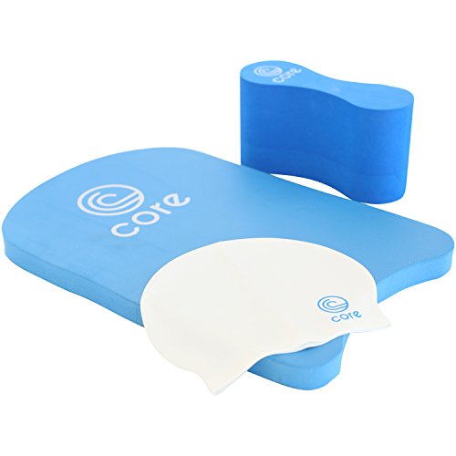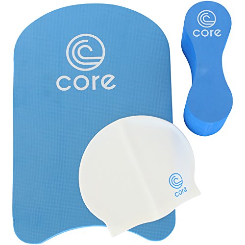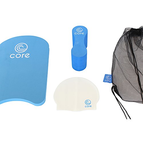 Swimming Pool Kit: Kickboard, Pull Buoy, Swim Cap and Mesh Bag | By Core Swim Training