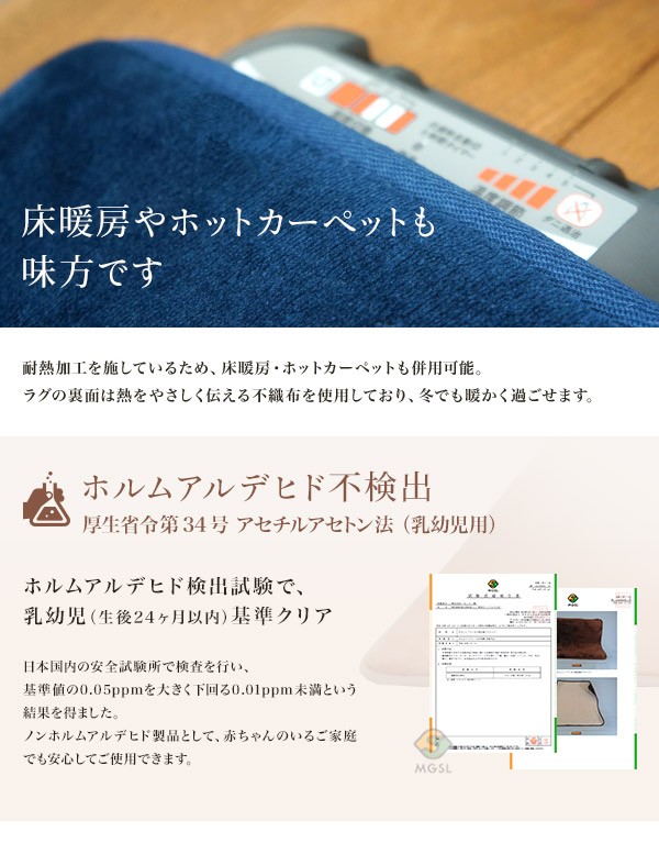 ラグの内部に高品質で極厚のウレタンフォームを使用。ふんわりとした弾力性は、お子様やペットの体もやさしく受け止めてくれます。