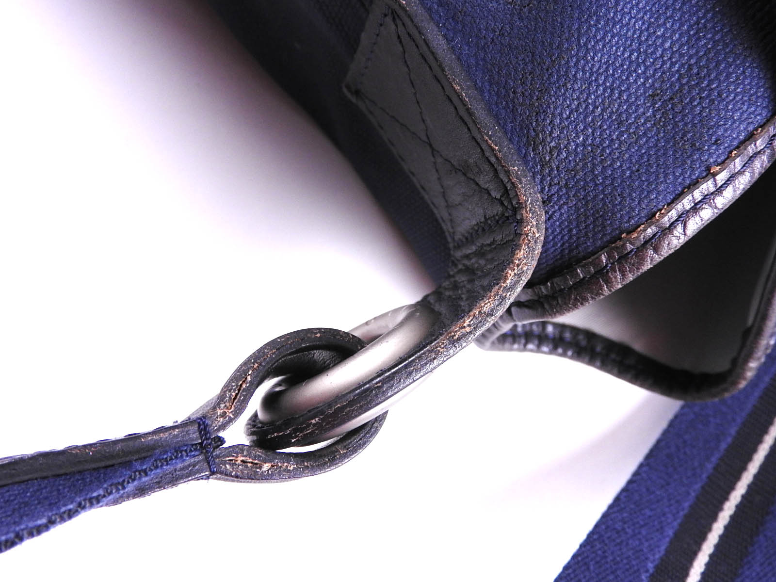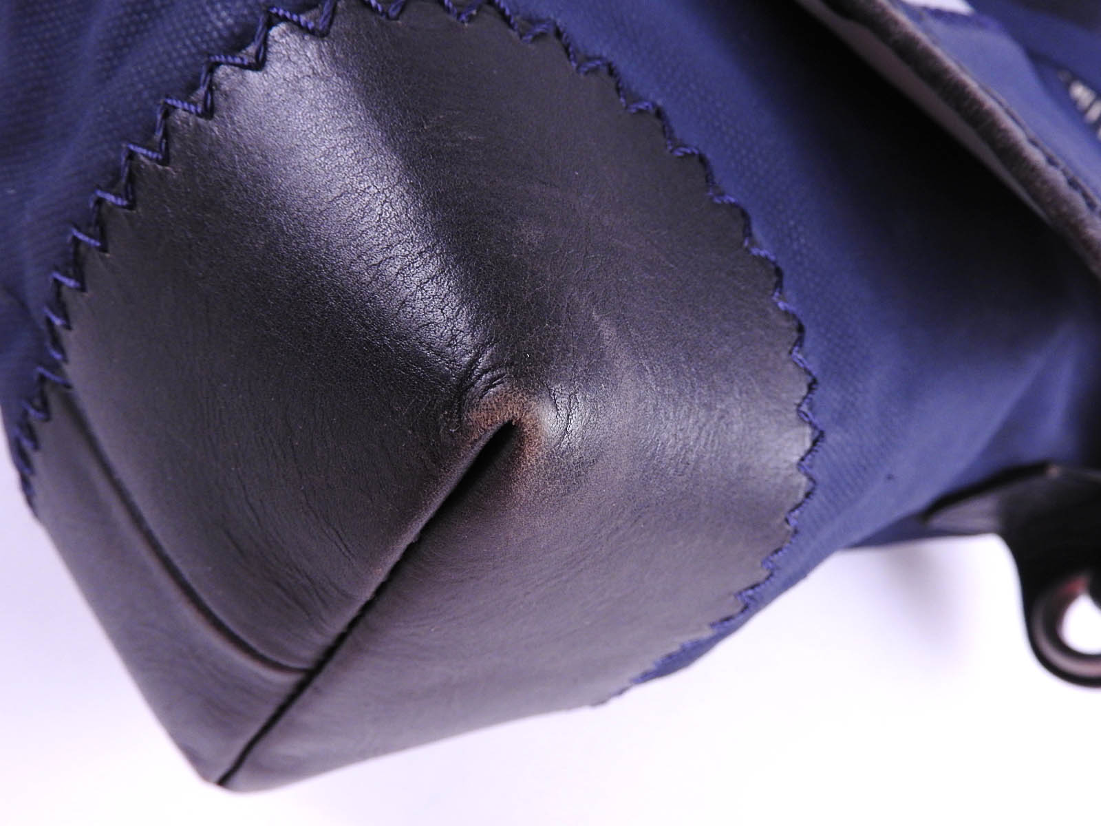 Used feeling. Some abrasions and wrinkles in the leather. Some stains and slight wrinkles in the canvas. |