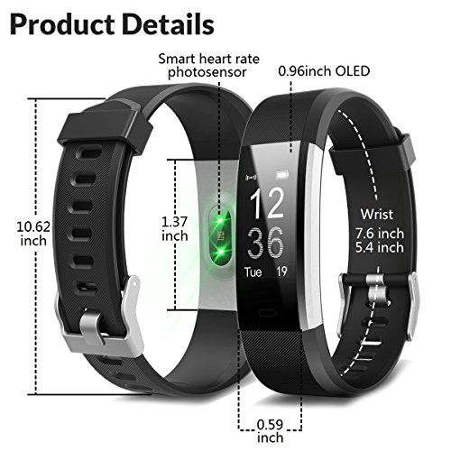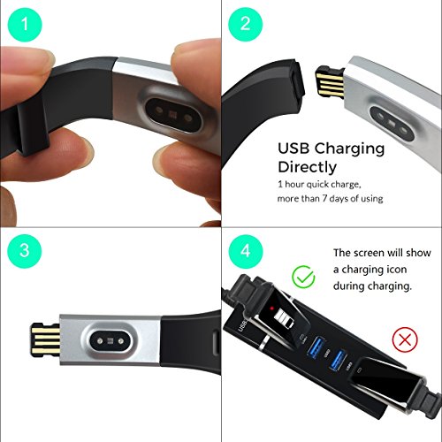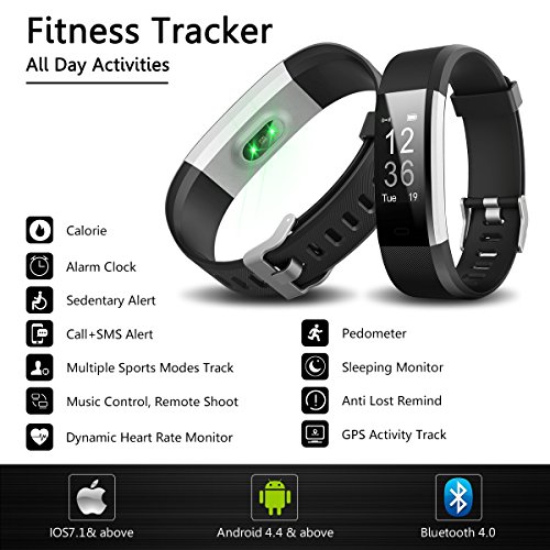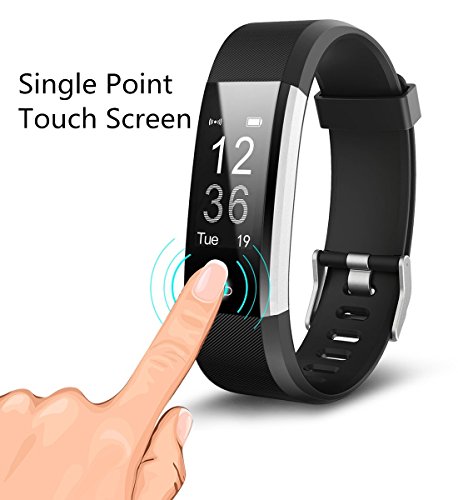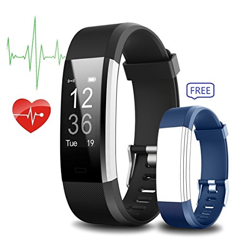Fitness Tracker, IYUT Waterproof Sport Smart Band Pedometer Activity Tracker Heart Rate Monitor Bluetooth for IOS & Android Phone with Blue Replacement Band - Black