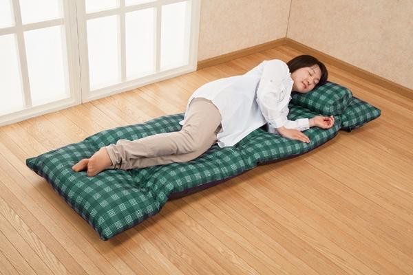 | マットは取り外し可能。マットだけ外した本体はアウトドアにも最適です!!三つ折りができ、コンパクトにたためるので(幅はたったの15cm!!)、使わない時はちょっとした隙間にしまっておけます。背もたれは6段階のリクライニングだから、お好みの角度でくつろげます。べルトで留められるクッション枕付き。 |