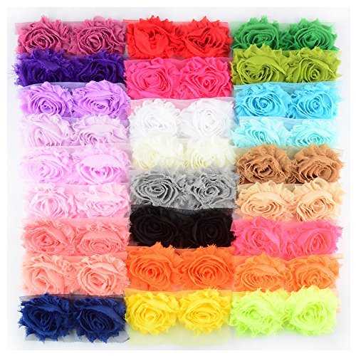 26 Pair 52pcs 2.5 Inch Chiffon Fabric Rose Flower Shabby Flowers Headband Flower, AIHB001