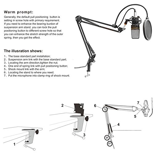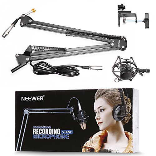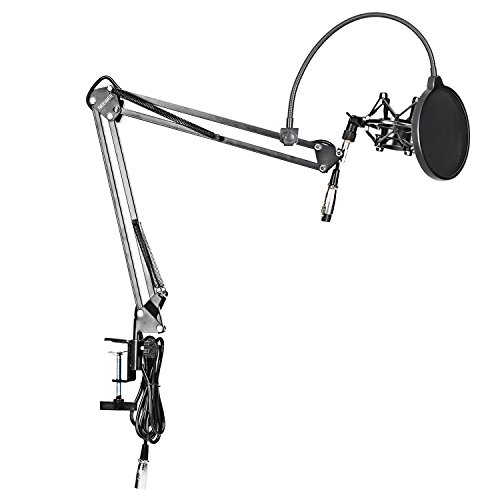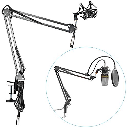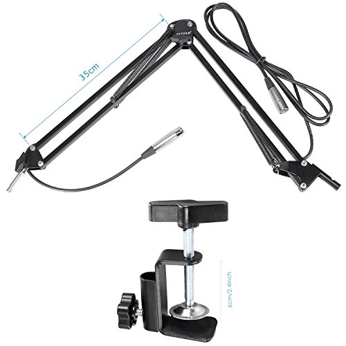 Neewer®NW-35 Microphone Suspension Boom Scissor Arm Stand with Built-in XLR to XLR Cable, Metal Shock Mount, Table Mounting Clamp and Pop Filter Windscreen Mask Shield